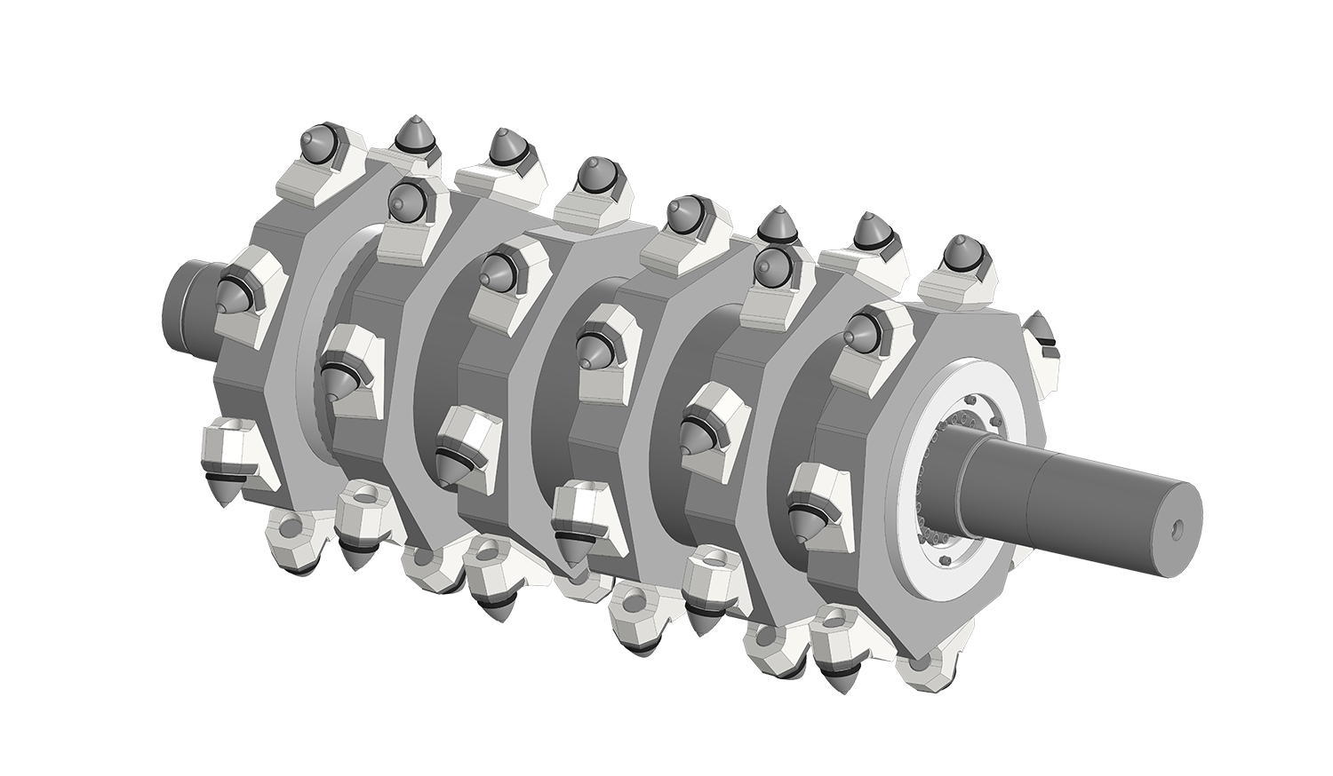 带刀架的轴是焊接结构,由主轴、管子、100毫米厚的环组成,带有安装刀架的位置,“采矿工具”有限责任公司生产的47个刀架安装在刀架上刀具和刀具支架的设计包括耐磨堆积在车身上,以确保刀具支架在操作过程中得到保护。